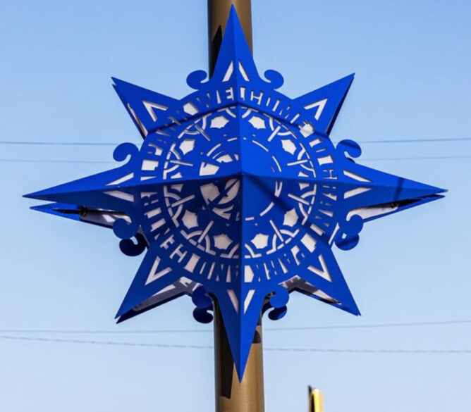 Details Blessing Hancock Papel PicadoArt Installations, illuminated sculpture, Outdoor Sculpture, Public Art, Sculpture